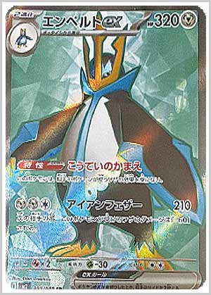 「メガリザードンX」は、ポケットモンスターシリーズでおなじみのリザードンがメガシンカした姿。真っ黒なボディと青い炎をまとう姿が特徴で、リザードンの中でも特に人気が高いフォルムです。その迫力あるデザインがカードに落とし込まれており、ファンにとってはまさにコレクション必須のカードといえます。